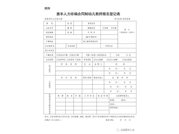 為滿足我市公辦幼兒園師資需求,我公司面向社會(huì)公開(kāi)招聘一大批非事業(yè)編合同制幼兒教師,以勞務(wù)派遣的方式與用人單位進(jìn)行勞動(dòng)力資源開(kāi)發(fā)合作?,F(xiàn)將有關(guān)事項(xiàng)公告如下:一、招聘人數(shù)及崗位我市招聘非事業(yè)編合同制幼兒教師50名,具體崗位在選崗前公示。二、招聘方式通過(guò)第三方勞務(wù)公...